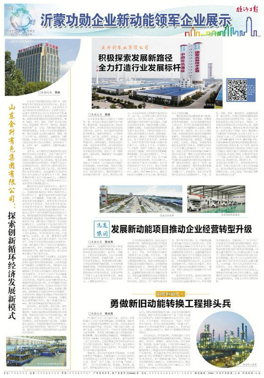 临沂日报刊登文章高度肯定金升集团在循环经济发展模式和新旧动能转化方面取得的成绩
